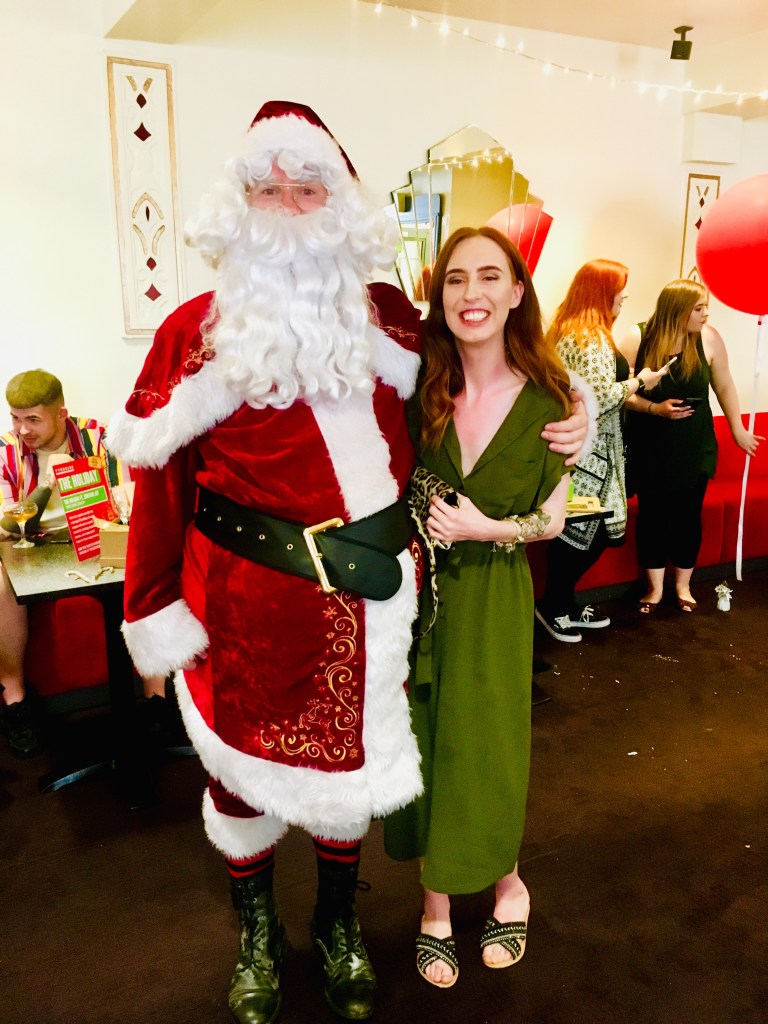 Last week, I was kindly invited along to the Tyneside Cinema’s Christmas event. Bare in mind it was July and one of the hottest days of the year. (Hence, why I am standing with Santa wearing a jumpsuit and sliders).